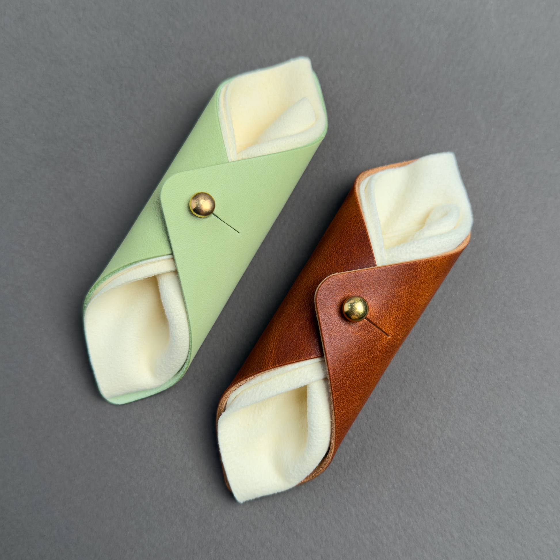 The Classic Cannoli Wipes are made of premium leather from one of America's most iconic tanneries. Vegetable-tanned using century-old liquors, the leather is infused with a unique blend of natural waxes and oils. This special treatment results in a supple texture and a darker surface that beautifully showcases the natural grain. It features a distinctive pull-up effect and a smooth finish that highlights its rich tonal appearance. Known for its durability and graceful aging qualities, this leather develops a stunning patina over time, making each product truly unique to its owner.