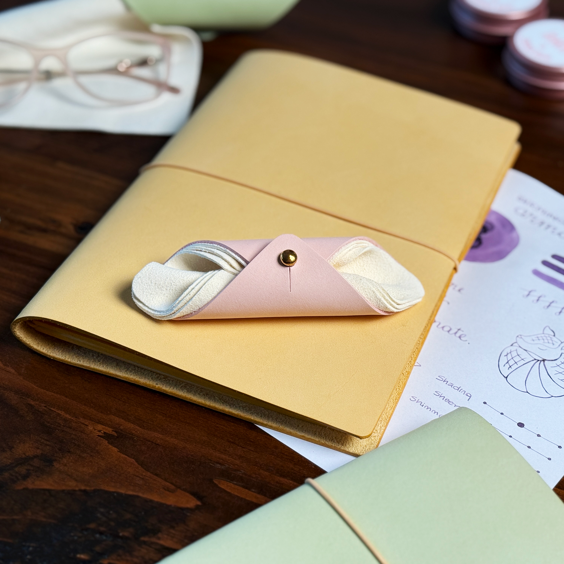 Crafted from premium leather and natural chamois, this multipurpose wipe is ideal for cleaning eyewear, jewelry, pens, camera lenses, electronics, luxury watches, and many other delicate items. With its playful cannoli shell and buttery texture, it tackles diverse cleaning challenges with ease, while bringing a touch of joy to your day.